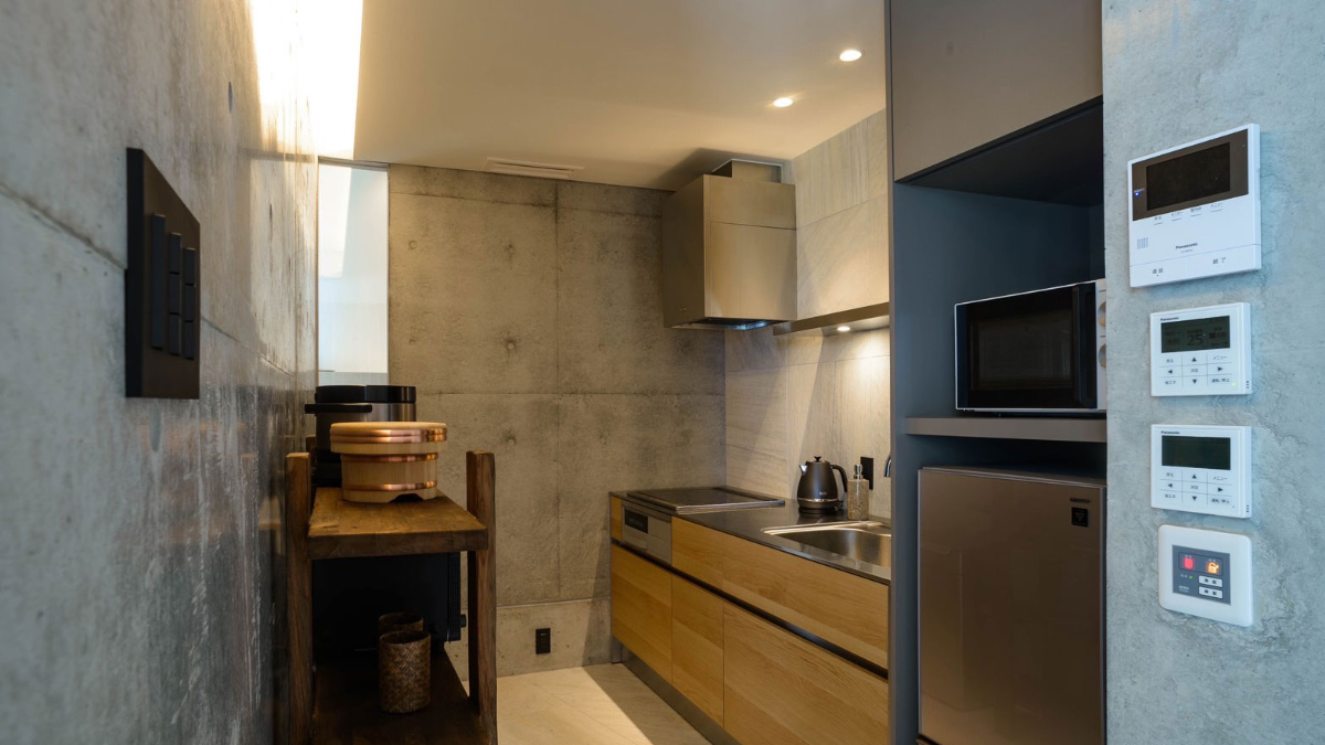 Hills suiteにはキッチンを完備。カトラリーやお皿、調理器具など必要なアイテムが一通り揃っているため、すぐに料理が始められますよ。