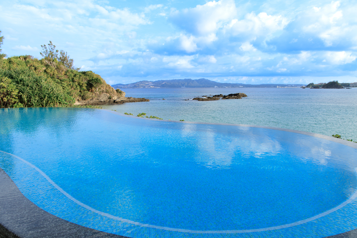 恩納村の壮⼤なランドスケープを生かした造形は、世界中のビーチリゾートホテルでの豊富な実績をもつハワイの「ベルト・コリンズ」社が手掛けたもの。
