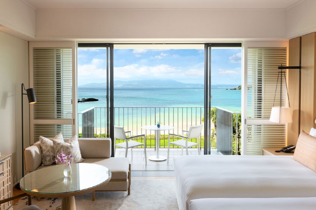 沖縄海岸国定公園内の約8万7000平米におよぶ敷地面積は、なんとハワイのハレクラニの4倍。その広大な敷地の中に建つ2つの棟「ビーチフロントウイング」と「サンセットウイング」は、ランドスケープを生かして建てられており、雄大な自然との一体感を味わえます。