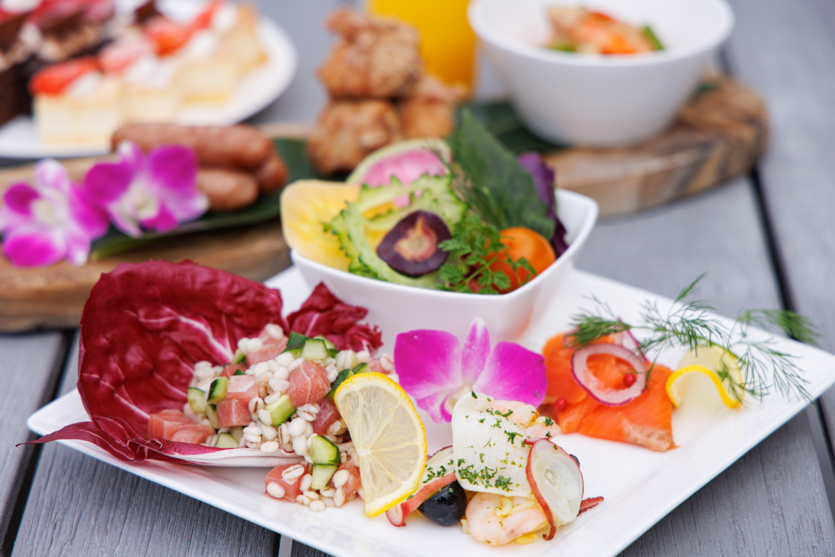 子どもがいたり、スケジュールが詰まっていたりすると、ゆっくりレストランで食事がとれないことも。そんなゲストに配慮して、ハレクラニ沖縄では客室でレストランの料理を味わえる「インルームダイニング」を提供しています。朝・昼・夕食だけでなく、夜食のオーダーもOK。メニューは時間帯によって異なり、キッズメニューも用意されています。クオリティの高い食事と多彩なドリンクが揃ったら、気兼ねなく美食を堪能しましょう。