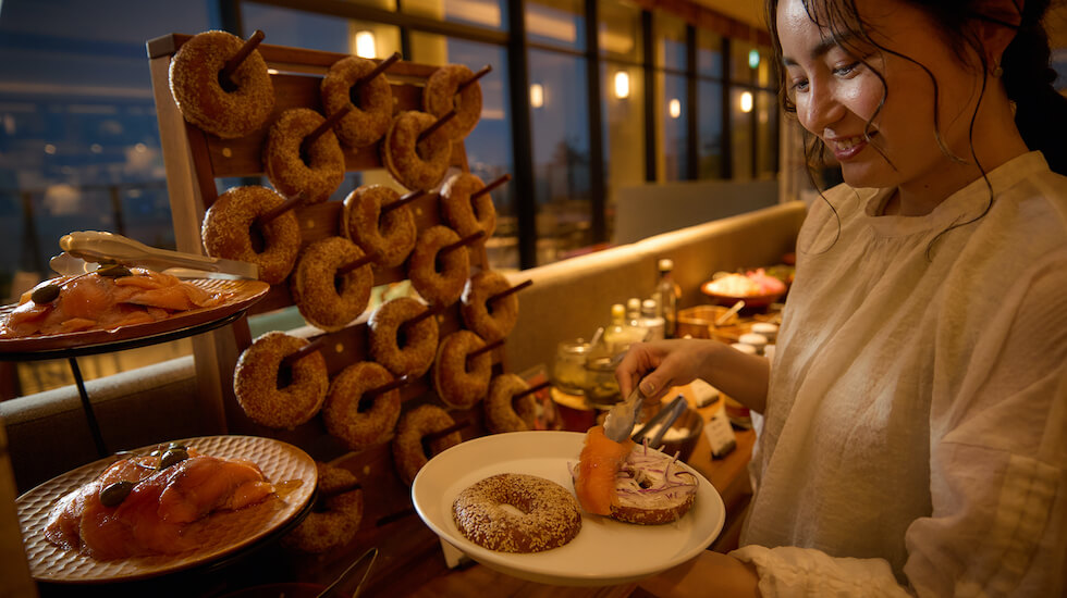 海鮮丼やベーグル、サンドイッチを好きな具材で仕上げるアレンジコーナーも見逃せません。