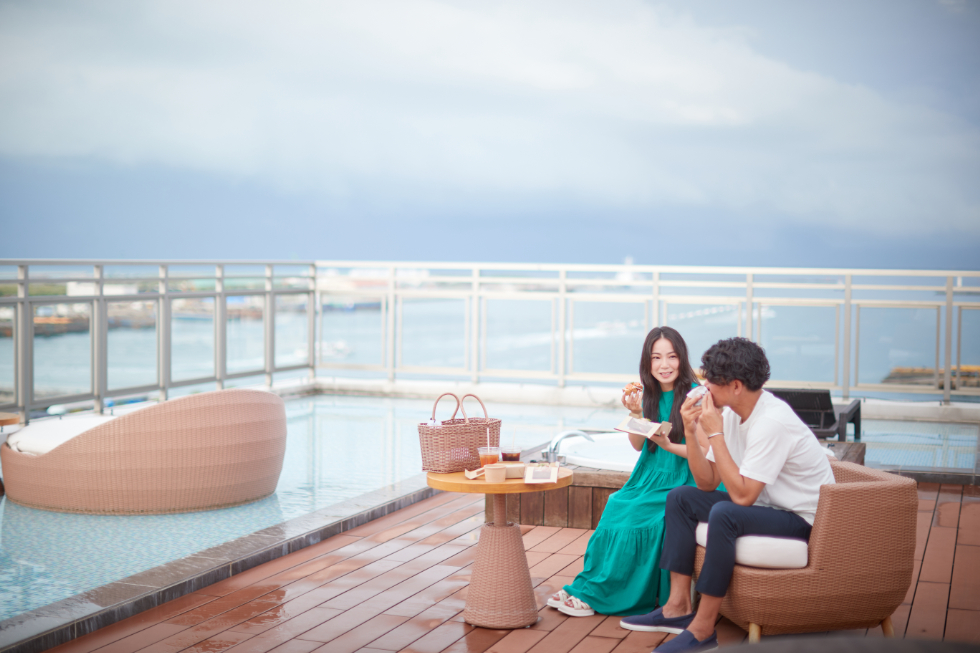 オールインクルーシブステイのゲストは、客室に用意された専用バスケットを使ってフードの持ち出しもOK。「ルーフトップテラス」や「ブックラウンジ」など、お気に入りの場所で食事できるのも、THIRD石垣島ならではの楽しさです。