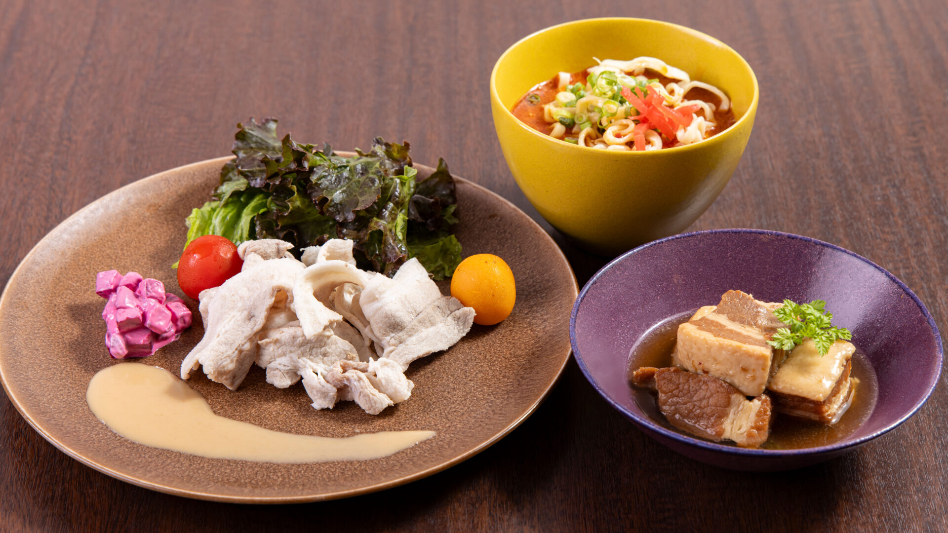 ディナーは、グランドメルキュールの定番料理から沖縄県産素材を使用した料理などをビュッフェスタイルで。夕食タイムでも、ワインやビール、リキュール類などアルコール類をはじめ、ソフトドリンクをフリーフローで楽しめますよ。