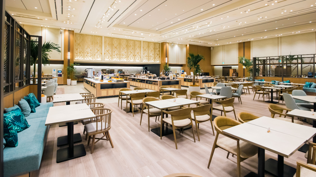 夕食は、ビュッフェレストラン「Le SENSORIEL」で、多彩なメニューを存分に味わいましょう。全352席の広々としたレストランでは、全国のグランドメルキュールで提供されているグランドメニューのほか、沖縄独自のオリジナルメニューや、ライブキッチンで調理されるメニューなど、さまざまな名物が提供されています。