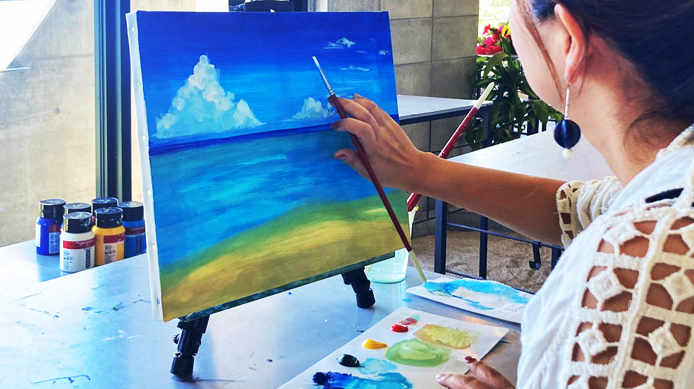 好きなドリンクを飲みながら、テーマにそって自由に描く。アートに触れる新感覚リゾート体験を発信する「Artbar Okinawa」とのコラボレーション企画です。昼と夜の部があるのですが、なんと昼の部は、ドリンク飲み放題付き!