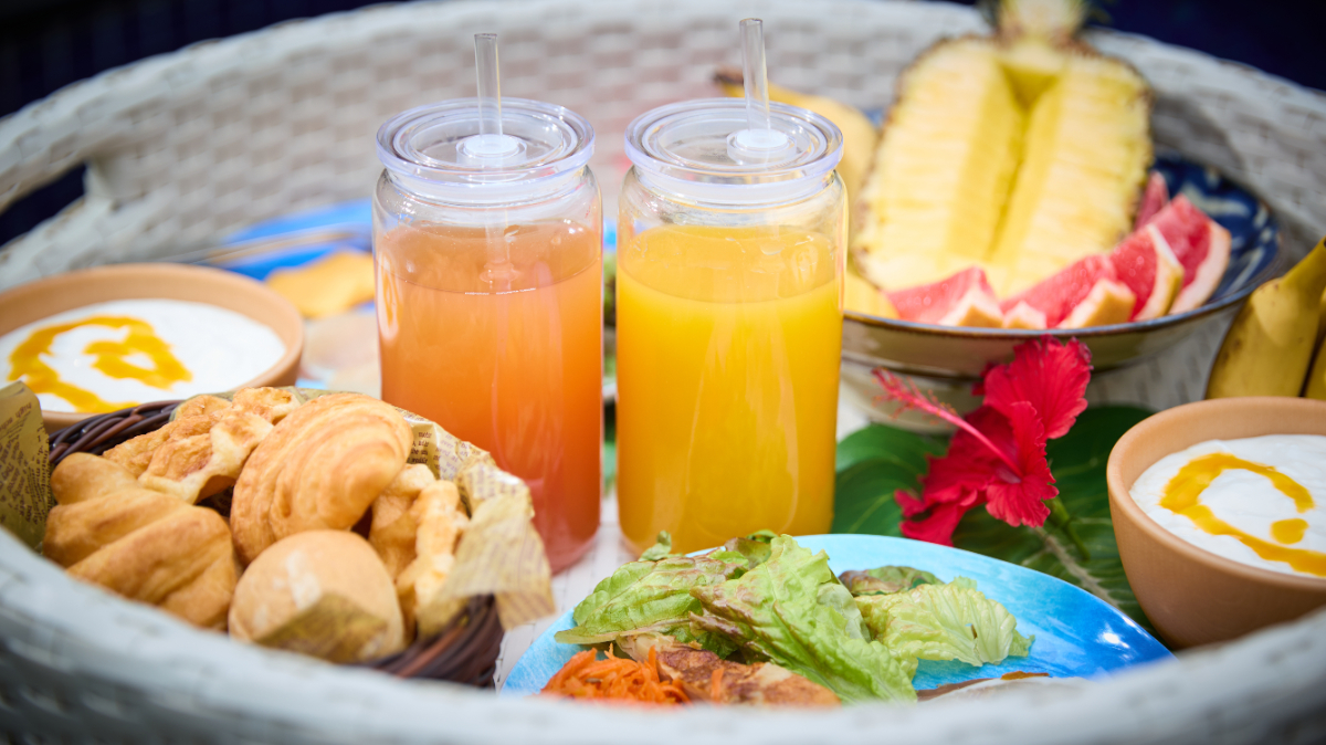 朝食時についてくる華やかなドリンクも、南国気分が盛り上がるアイテムのひとつです。