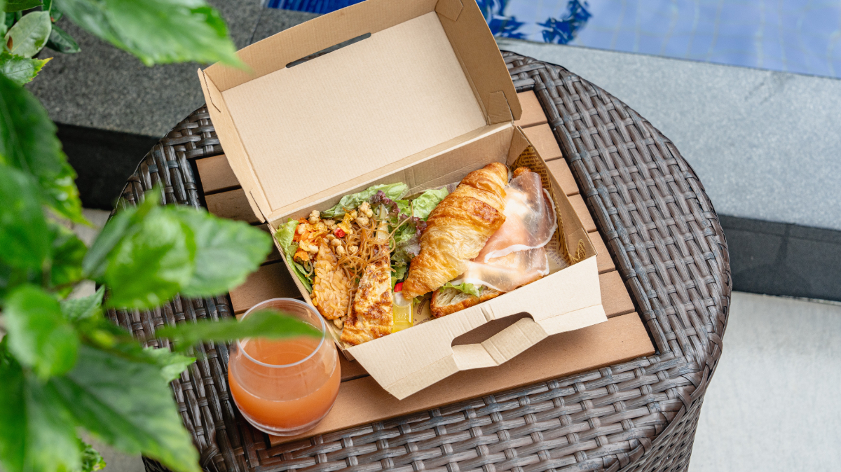 フローティングブレックファーストのほか、名護のワルンルンパと提携した朝食BOXも選択可能。