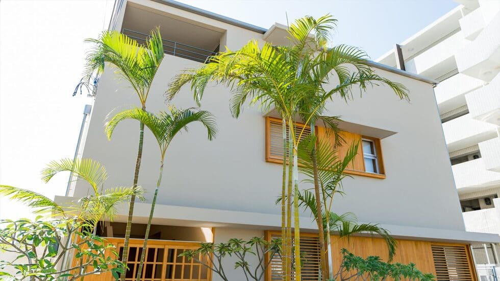 和を基調とした外観と、南国の草木が魅力的な客室。観光地巡りも楽しいけれど、こんな客室なら早く戻りたくなりますね。
