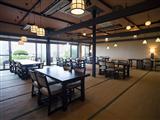 味噌汁に入れると磯の香りが広がる「太良のり」をはじめ、宿近くの石橋豆腐店の手作り豆腐や鹿島米の白米などが味わえます。食事処に併設するオープンデッキで、食後のコーヒーを頂くこともできます。