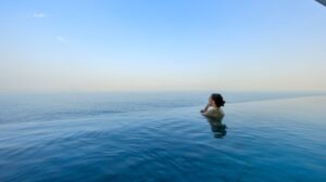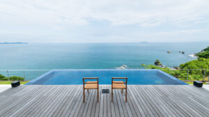 熱海駅から車で約15分、まるでリゾート地にある別荘のような佇まいのホテル「UMITO VOYAGE ATAMI」は、一部の客室がプール付き。ホテルは「海と贅沢に旅をする」というコンセプト通り、全室がスイートでオーシャンビューです。ホテルに大浴場はありませんが、客室には温泉地・熱海らしく、美肌泉質の温泉が楽しめる露天風呂やテラスルームを完備。波の音を感じながらの湯浴みをどうぞ。ホテルは全室キッチン、洗濯乾燥機完備のコンドミニアムスタイル。熱海での長期滞在や夏に海を満喫したい人におすすめですよ。1日1組限定の最上級スイート「THE SALON」は、なんと海と一体化できるインフィニティプール付き。春、秋期間は温水プールなので夏以外でも満喫することができますよ。