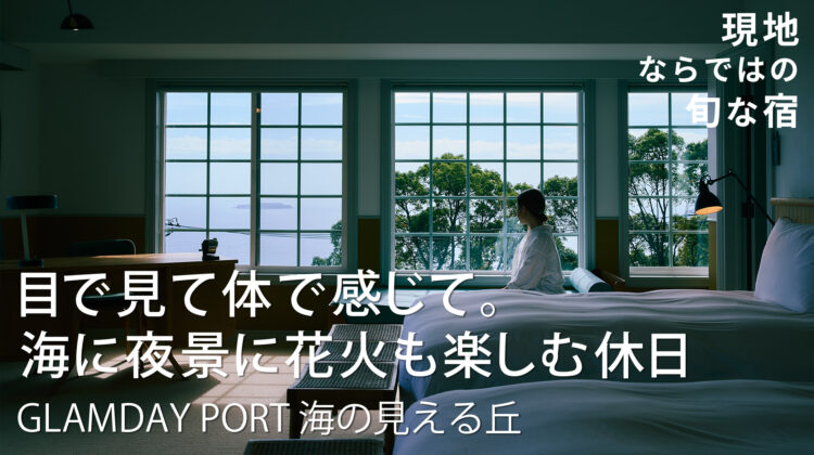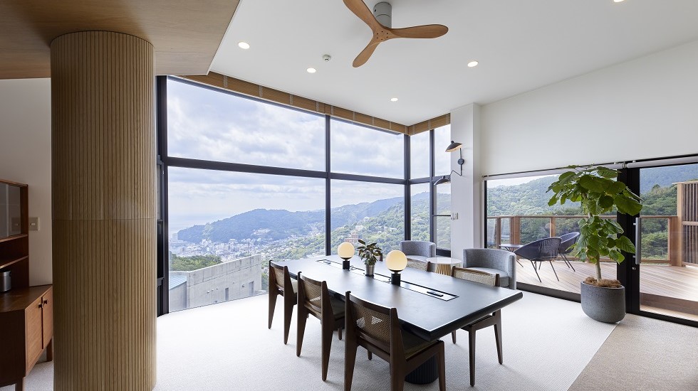 「GLAMPETIT HORIZON」は1日1組限定、美しい水平線が望めるおしゃれな一棟貸しリゾート。最初に出迎えてくれるのは、リビングからのすばらしい眺め。眼下に広がる熱海の街並みとどこまでも続く青い海に、思わず息をのんでしまうはず。ディナーはBBQセットを予約して、ぜひキッチンにある鉄板焼きグリルで。他にもホテルクオリティのメイン料理や選べる副菜が充実しています。夜はみんなで映画鑑賞したり、和室でゴロンとゲームをしたり思い思いの時間を過ごして。リビング以外にベッドを配した洋室もあり、最大7名まで宿泊可能です。温泉も楽しめる贅沢リゾートで、大人のグループ旅行はいかがでしょう。