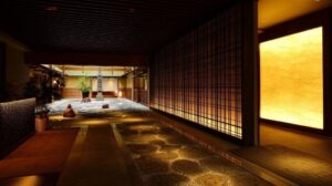 伝統的な美しさのある、由緒正しき温泉旅館。宿に一歩入ると和の風情が漂い、約3000坪の石庭園には銘石や石燈籠のほか、数寄屋造りの客室や露天風呂、ダイニングなどが点在しています。客室は全27室。中でも、貴賓室「弓ヶ浜」は囲碁の名人戦、将棋の対局室に指定されている客室です。3本の自家源泉を持ち、客室の露天風呂や大浴場などで温泉を堪能できます。男性の露天風呂は野趣あふれる造りで、女性用は翡翠石でできた湯船があり、子宝に恵まれるという言い伝えがあるのだとか。貸切風呂もあり、宿内で湯めぐりも楽しめますよ。夕食は、二十四節季を取り入れた京風懐石。季節によって変わる献立とともに、日本酒やワインを堪能しては。世界最古と言われるジョージアワインもラインアップされています。