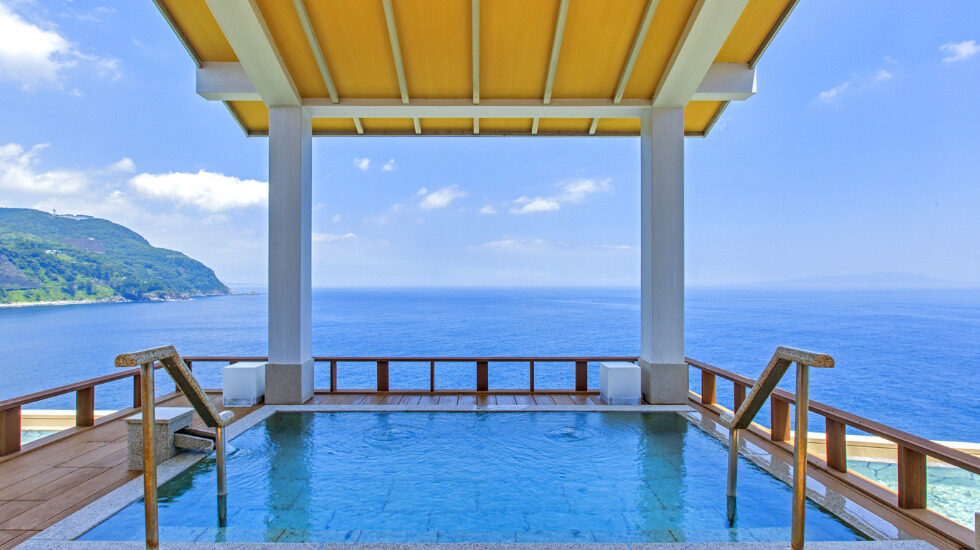 【静岡/伊豆高原】ラグジュアリー和ホテル 風の薫UMIは全室オーシャンビューで、20室の部屋全てに海を望める露天風呂が付いています。60平米の広い客室でくつろいだら、海を一望できる貸切温泉でゆったり。スパークリングワインを飲みながら足湯やエステフィッシュをしたり、無料のカラオケを楽しんだり。ホテルでは滞在中に無料で楽しめる施設やサービスが充実しています。夕食は、地元で獲れた食材を使用した会席コース。もちろん夕食時のドリンクも無料だから驚きです。記念日には小さなケーキや記念撮影のもてなしもあり、大切な人との滞在を盛り上げてくれます。他にも、カラオケ施設やバータイム、夜食サービスなど、チェックインからチェックアウトまでオールインクルーシブな滞在を思う存分楽しむことができますよ。