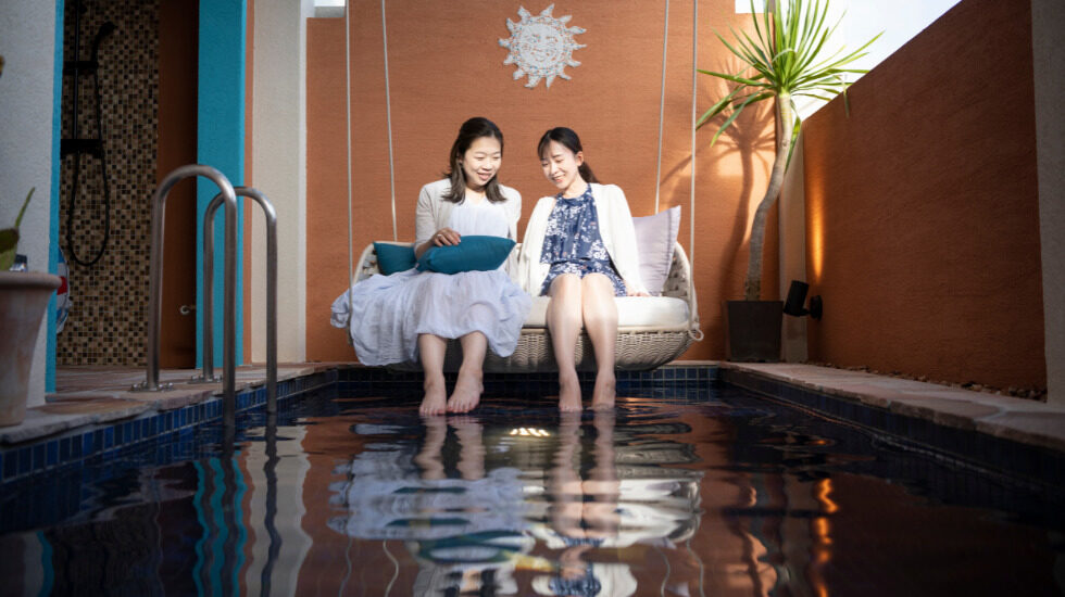 海外のリゾートホテルがモチーフの「コルテラルゴ伊豆高原」は、「都心から約2時間で行ける海外リゾート」と呼ばれる雰囲気が魅力。全ての客室に温泉が引かれていて、部屋でエステを受けることも可能です。メゾネットタイプの「バリスイート」は、アジアンリゾート感たっぷりの部屋。バリの家具や調度品があしらわれており、天蓋付きの大きなベッドは写真映えすると評判です。スペインとネイティブアメリカンの文化が融合した都市・サンタフェがテーマの「サンタフェスイート」は、テラスにプライベートプールが設置されています。プールの上に吊り下げられたブランコに乗って、伊豆高原で優雅な時間を過ごしてみては?