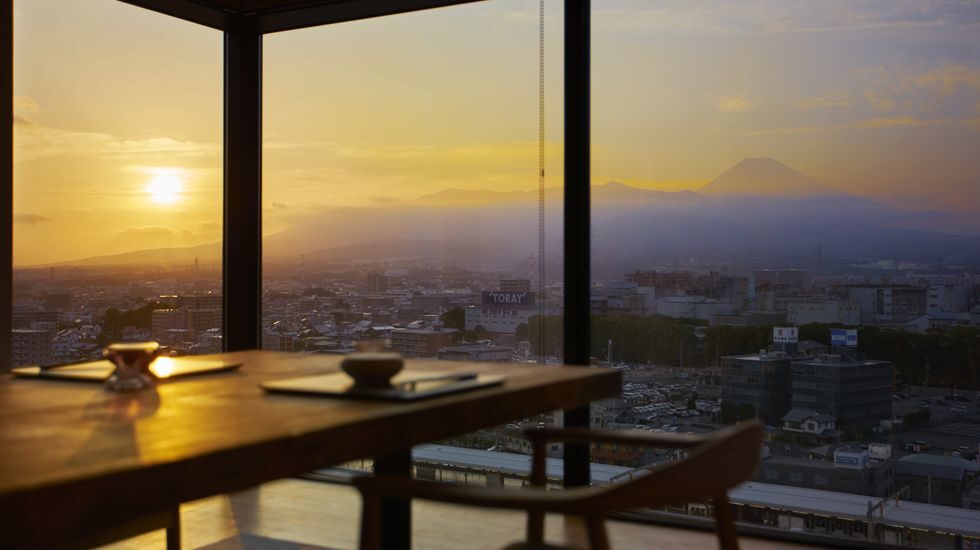 【三島】JR三島駅南口から徒歩約1分の場所にある、落ち着いたホテル。商業施設を併設し、館内にはコインランドリーやフィットネスがあるなど、都会的な便利さも兼ね備えています。さらにこのホテルの推しポイントは、地上60メートルにある展望風呂。湯浴みをしながら眺める、富士山と三島の町並みは絶景です。なお、全客室に2メートル以上の窓が設けられ、開放的な部屋でくつろぐことができます。13階にあるレストランでは、富士山を眺めながら朝食・夕食だけでなくランチの用意も。沼津港や近隣の漁港で獲れた魚介類や、日本屈指の高級野菜として愛されてきた「箱根西麓三島野菜」など、新鮮な食材を存分に堪能してくださいね。