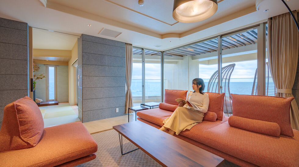 【静岡/伊東】川奈ホテルは伊豆・川奈の高台に建ち、目の前に広がる相模灘や伊豆大島、晴れた日には富士山や房総半島まで見渡せる圧倒的なロケーションが魅力です。客室はオーシャンビューを中心に設計されており、窓の外には青い海と空、伊豆の島々が広がり、ベッドにいながら贅沢な絶景を堪能できます。温泉大浴場からの景色も見逃せません。特に女性露天風呂は海と一体化したような造り。湯に浸かりながら伊東の美しい海や空を眺めることができ、心身ともに癒される特別な時間を演出します。また、ホテルには2つの世界的評価を受けるシーサイドゴルフコースを併設。海を望みながらプレーできるダイナミックな体験も川奈ホテルならではの魅力。360度の絶景を堪能したい人には、館内にある展望台もおすすめです。ぜひ立ち寄ってみてくださいね。