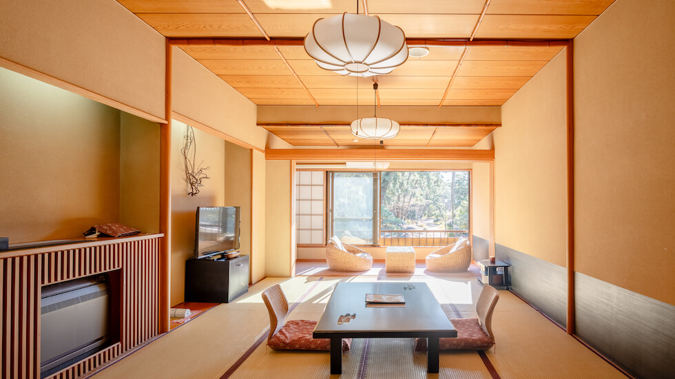 【静岡/清水】富士山世界文化遺産の構成資産のひとつ「三保松原」は、天女が舞い降りたとされる羽衣伝説の地。そんな歴史ある地に唯一佇む旅館が、天女の館 羽衣ホテルです。天女の羽衣伝説が残る羽衣の松や、浮世絵にも描かれている富士山を望む風景へも歩いてすぐ。散策を目的に宿泊する人も多いのだとか。館内には、羽衣伝説にまつわる掛け軸や豪華な能装束の人形、富士山が描かれた天袋、洋風のステンドグラスに見る日本美の象徴「梅と鶯」など、どれも目を惹かれる品々が飾られています。客室は全15室、2000坪を誇る日本庭園を眺められる部屋も。歴史や伝承に想いを巡らせる旅をしたい人にぴったりの宿です。