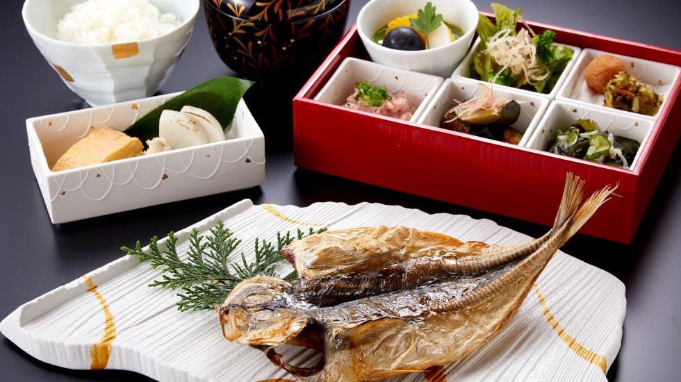 こだわりの食材を用いていて、食べごたえも十分な「ボヌール」での朝食。特に脂がしっかりと乗ったアジの干物が好評で、ご飯もおかわりしたくなりそうです。大きなビュッフェ会場も人気ですが、「ボヌール」で食べられる和食の朝食も熱海らしくて評判ですよ。