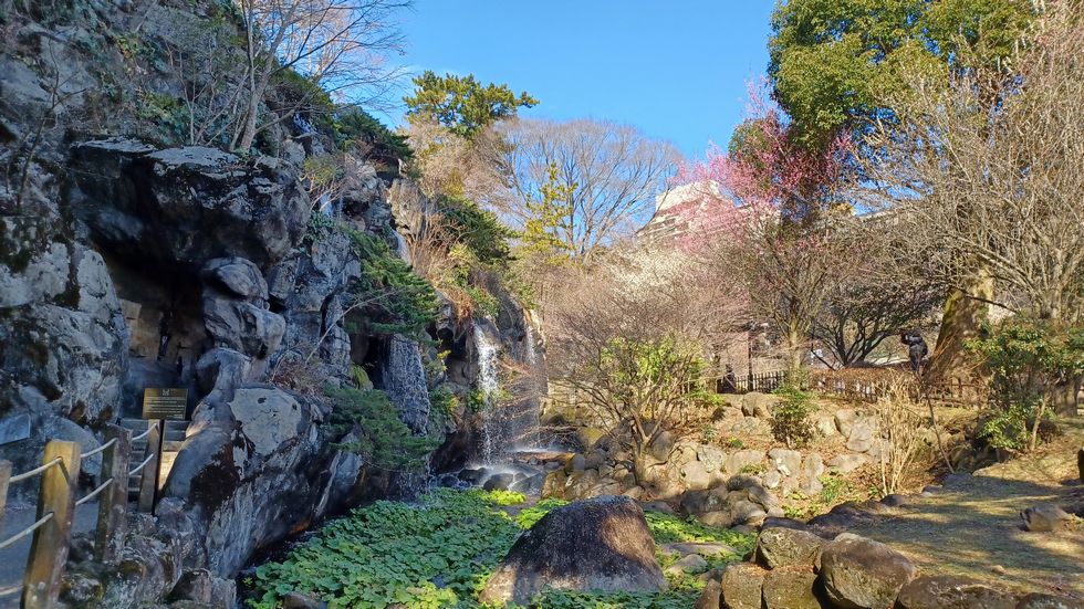 梅園内には、樹齢100年を越える梅の古木をはじめ、60品種・469本の梅が植えられています。開花すると紅・白・薄紅色の梅が咲き誇り、辺り一面に甘酸っぱい香りが漂うほど。早咲きから遅咲きまで長期間にわたって楽しめるのも魅力です。ちなみに、私は梅園内の橋から見える景色や梅見の滝を眺める時間が好きで、とても癒されました!