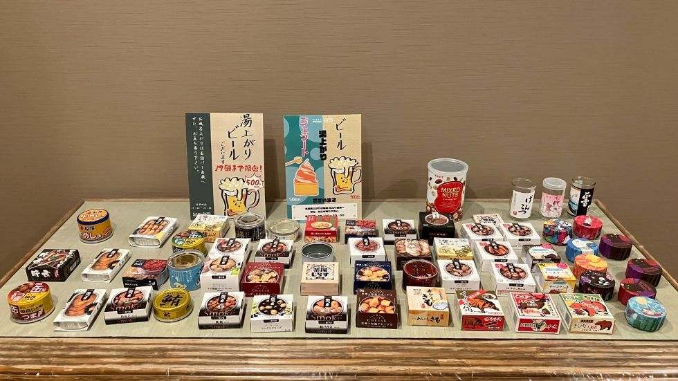 波音でお風呂を楽しんだあとは、すぐ近くにあるにぎわい横丁へ。「缶詰バーは、いろんな種類の缶詰を見ているだけでも楽しかったですし、選ぶ楽しみもありました。温めて提供してくれるのも良かったです」。こんなに種類があるんですね~。これは選びがいがあります。