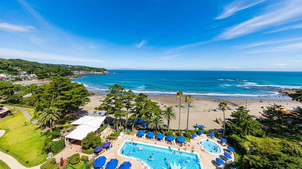 伊豆今井浜 東急ホテルは、県内でも屈指の美しさを誇る今井浜海岸に直結したリゾートホテル。ビーチまで徒歩1分という立地の良さもさることながら、キッズルームやバリアフリー客室を備え、小さな子どもからシニア世代まで安心して楽しめる環境です。