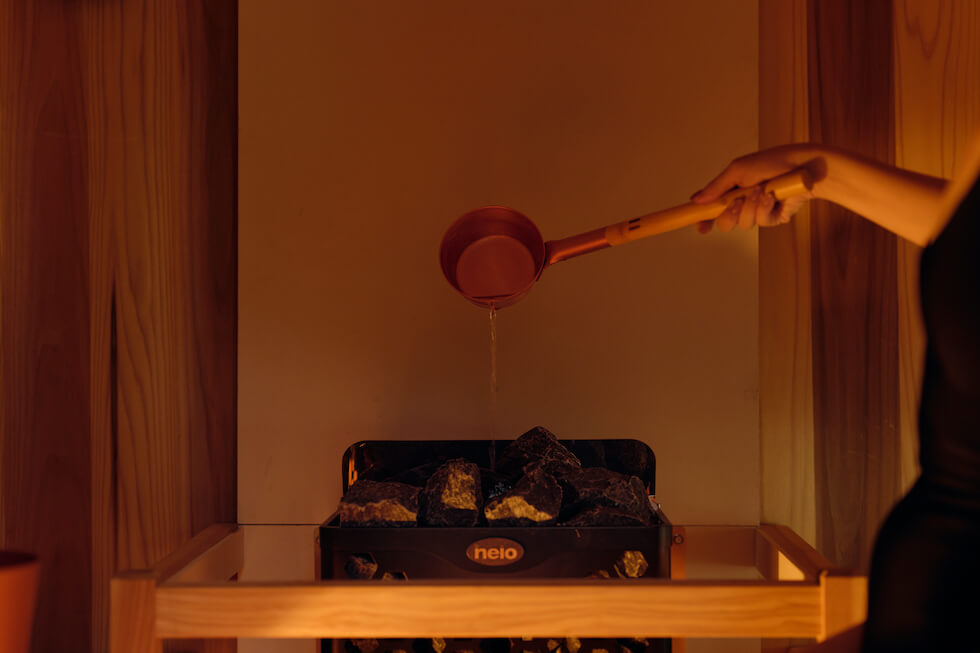 サウナ室内ではサウナストーンに水をかける「ロウリュ」を楽しむこともできます。好みの湿度と温度に調整できるのが人気の秘密ですよ。