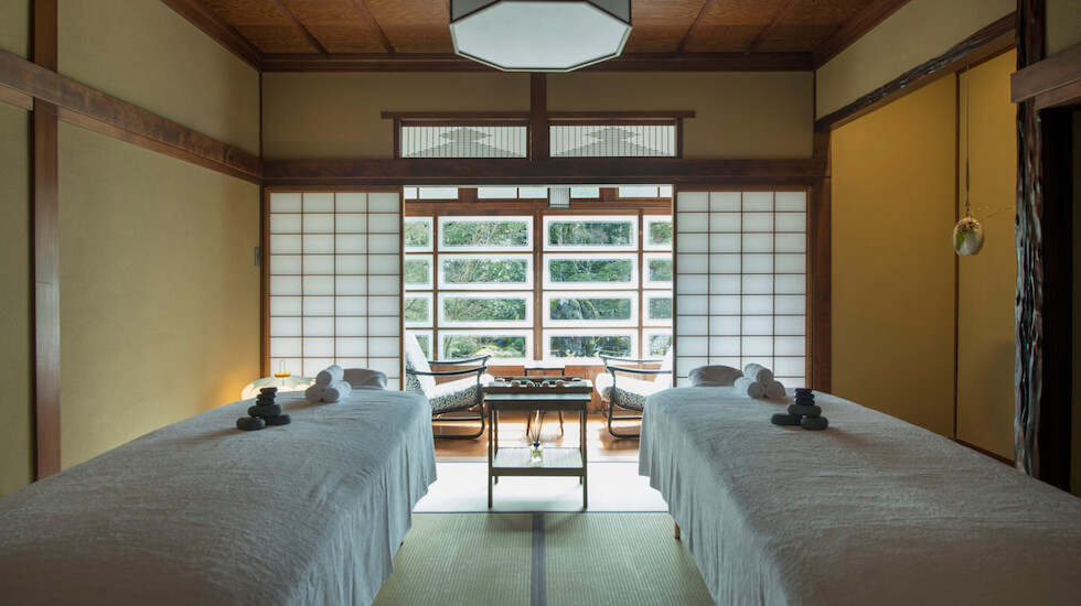 客室は意匠がすべて異なる16室。露天風呂付きと内風呂付きの客室があり、それぞれに和室タイプと和洋室タイプを用意。眺望や庭園散策を楽しみたい人、館内施設にアクセスしやすい場所がいい人など、希望に合わせて部屋を選べます。山櫻花を除く客室のお風呂はすべて温泉。中でも「青水沫」「紅梅」「早蕨」の3つの客室では、源泉かけ流しの湯を楽しめます。それ以外の客室は温泉に加え給湯器があり、湯温を調節することができます。こだわりのバスアメニティにも注目してくださいね。部屋は床暖房になっており、湯上がりも足元はあったか。足袋の用意もあります。部屋のミニバーにあるドリンクやアルコール類は、館内施設と同じくオールインクルーシブなので、温泉を堪能した後に至福の1杯をいただけますよ。