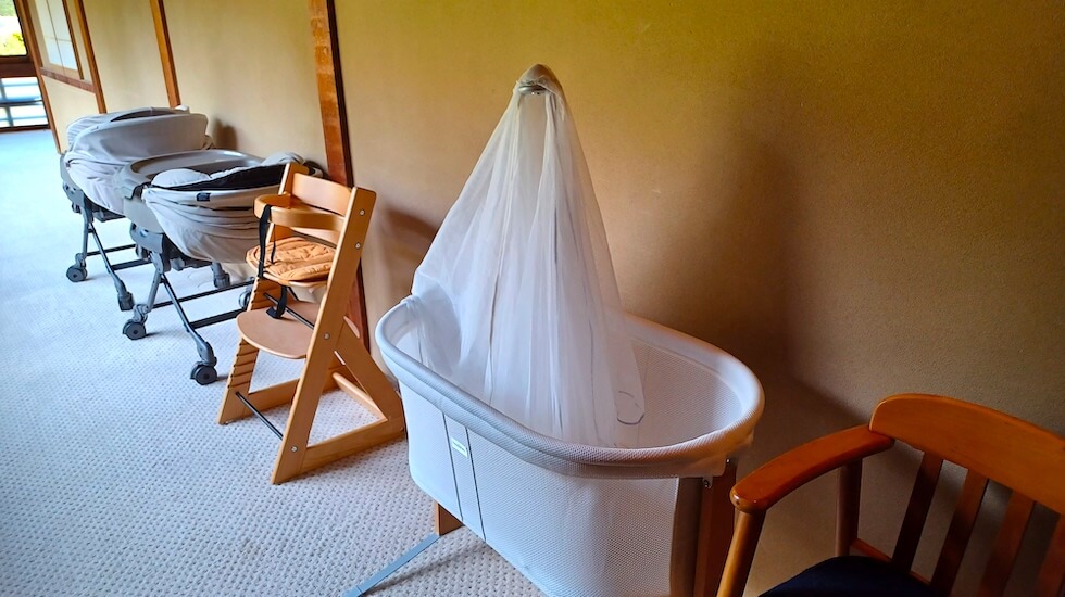 高級旅館ではなかなかめずらしい、赤ちゃんや子ども向けのサービスや備品類が充実しています。ベビーベットやベビーバスはもちろん、おむつペールや水遊び用のウォーターシューズの貸し出しまであります。食事処でも必要に応じて子ども用の椅子やベビーベッドを用意してくれ、哺乳瓶の熱湯消毒や離乳食の温めの相談にものってくれますよ。また、赤ちゃんの泣き声や子どもの足音が気になる場合を考慮して、可能な限り1階のお部屋に案内してくれます。