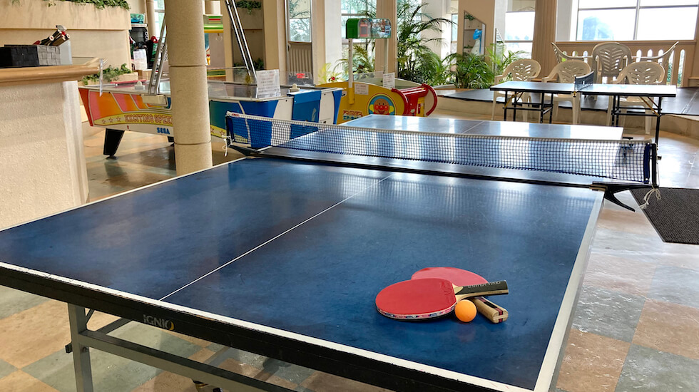 子ども連れ旅行でも、楽しめる施設が豊富な堂ヶ島ニュー銀水。グランドフロア「イズ・パラッツォ」は、子どもも大人も楽しめるアミューズメントゾーンです。子どもと一緒に遊ぶには、夏季限定の屋内プールやゲームコーナー、無料の卓球コーナーがおすすめ。特に屋内プールは悪天候や気温が落ちた夕方ごろも楽しめるので、家族連れで賑わっています。また、卓球も白熱すること間違いなし。入浴前にひと勝負など、いつもとは違う家族時間を過ごしましょう。