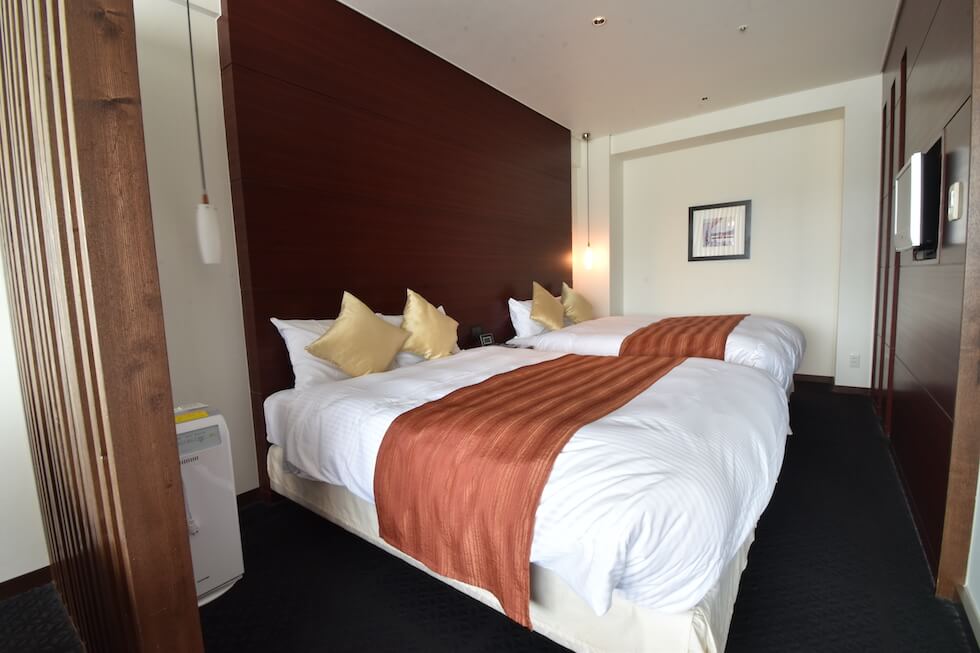 中でも「プレミアルーム」は、セミダブルベッド2台に加え、ソファーベッドも2台備え、最大4名まで宿泊可能。ファミリーやグループにおすすめの客室です。バス・シャワー付きトイレ完備で、DVDプレイヤーやスピーカー、加湿器も設置されており、多彩な設備でくつろぎをサポートします。