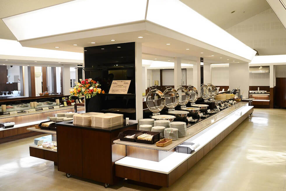 ビュッフェ台がずらり。朝も夜も好きなだけ楽しめる