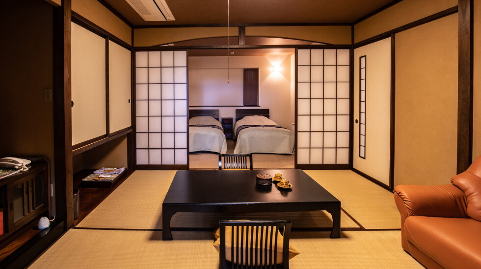 和洋室ツインには、香り豊かな檜の半露天風呂を設置。特別に用意された“静寂”の中で、野鳥のさえずりや虫の音などあえて耳を澄ませたくなる音に気づくはず。風が起こす草木のざわめきさえ感じられたら、あなたはここにある非日常を満喫しています。