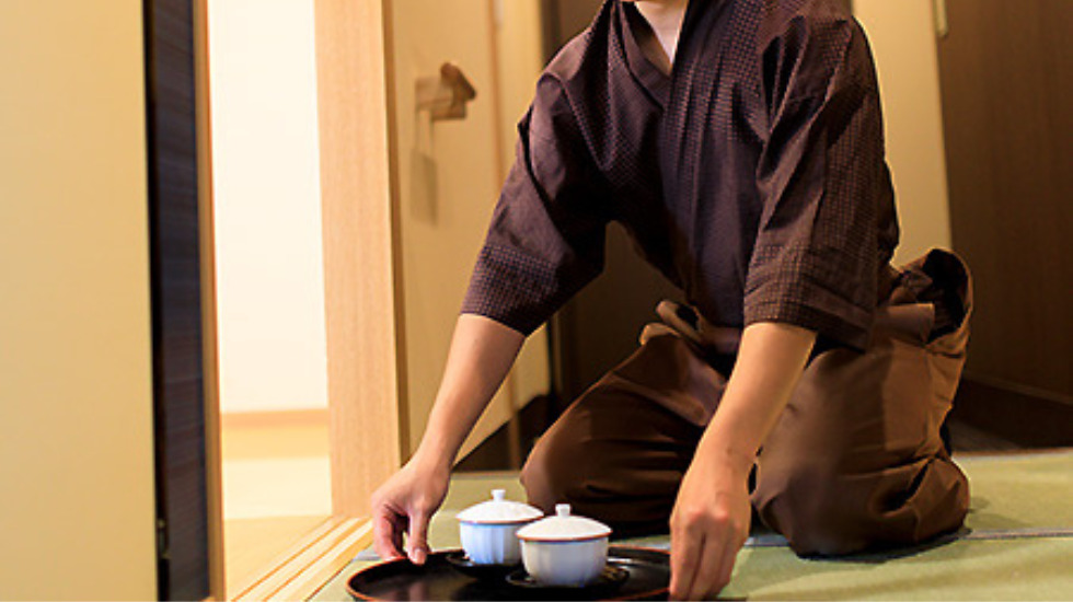 ふすまを開ける、お茶を入れる。旅館文化を大切にする宿ならではの和装の所作は、ひとつ一つが凛としています。