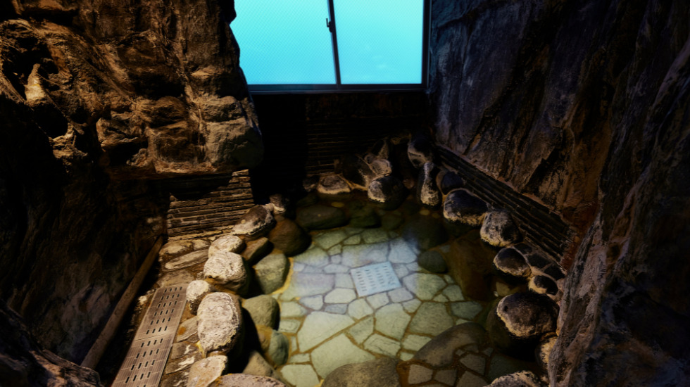 満天大浴場の多彩な浴槽の中には、雰囲気のある洞窟風呂も。静かにゆっくりと、柔らかな湯を堪能できます。