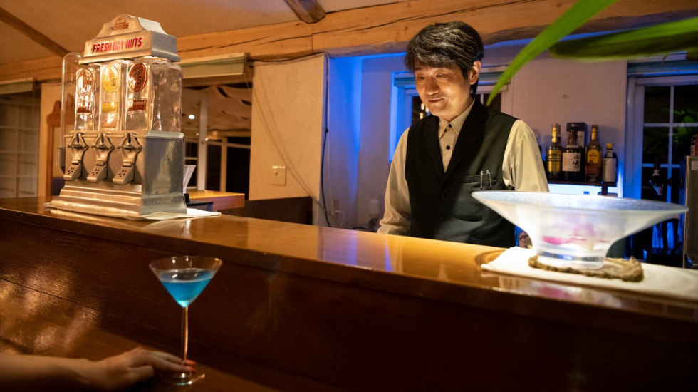 ラウンジにはバーカウンターもあり、ゆったりとワインやカクテル、地ビールなどのアルコールが楽しめます。テラスに出て、風を感じながら味わうのも気持ちがいいですよ。