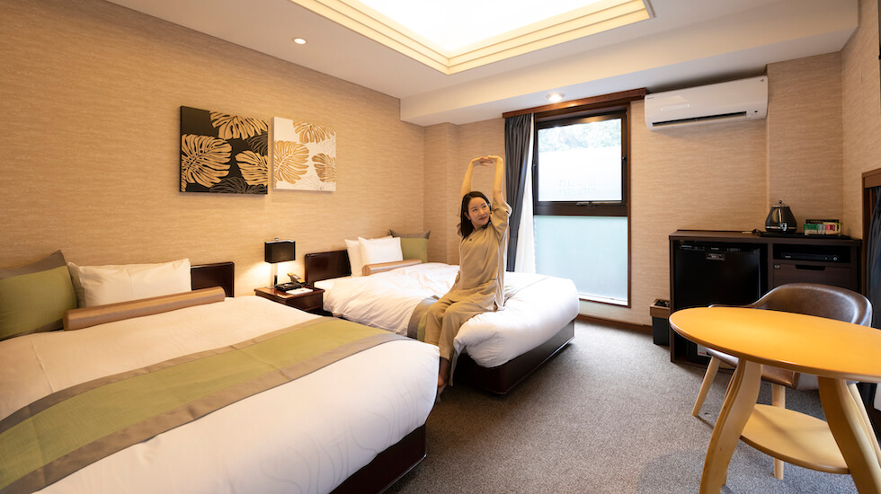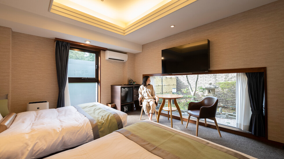 3つあるベッドルームは、すべてツインの造り。着心地の良い作務衣に着替えて、リラックスタイムを過ごしましょう。