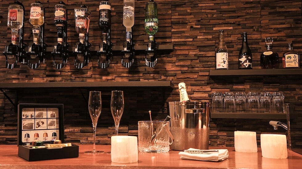 ダイニングは、おしゃれなミニバーが設置されているので、食後のバータイムも客室でのんびりと過ごせます。