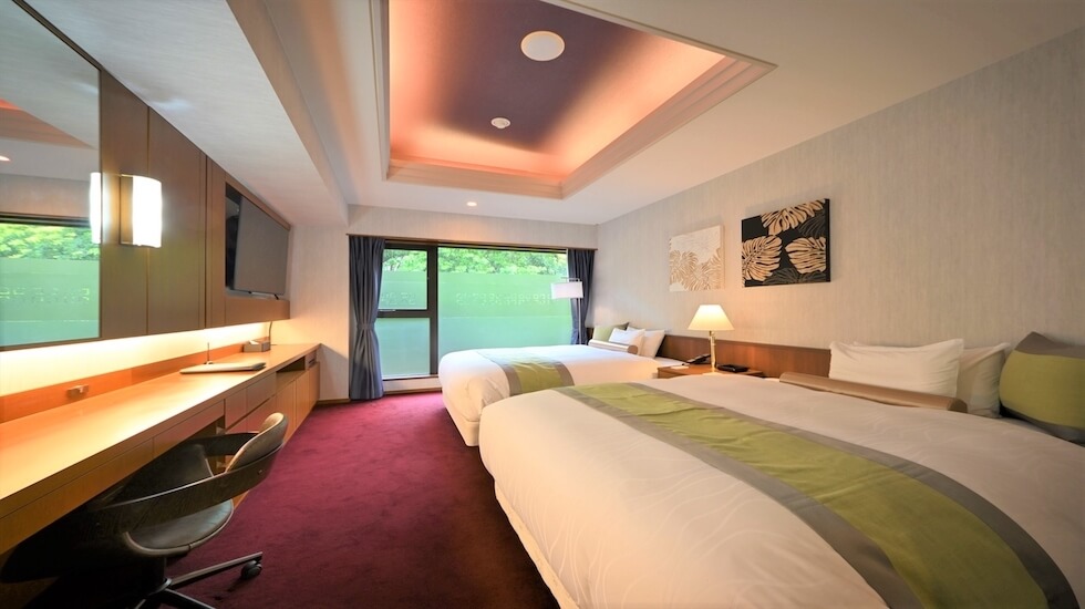 客室内には、バランスボールとヨガマットも置いてあるため、朝、カーテンを開けて風に揺れる緑を楽しみながらストレッチをしてもいいですね。