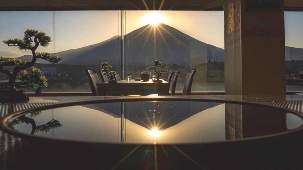 レストランの大きな窓からは富士山が一望できます。夕暮れの富士を眺めながら味わう食事はまた格別です。