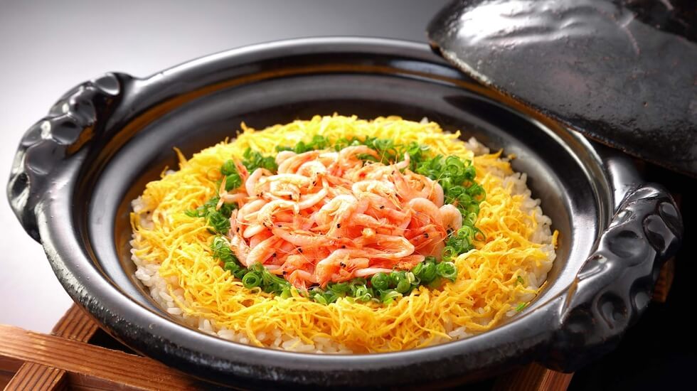 春に好評な桜海老の土鍋ご飯。水からこだわり炊き上げたご飯に桜海老をふんだんに使った、目にも鮮やかな逸品です。