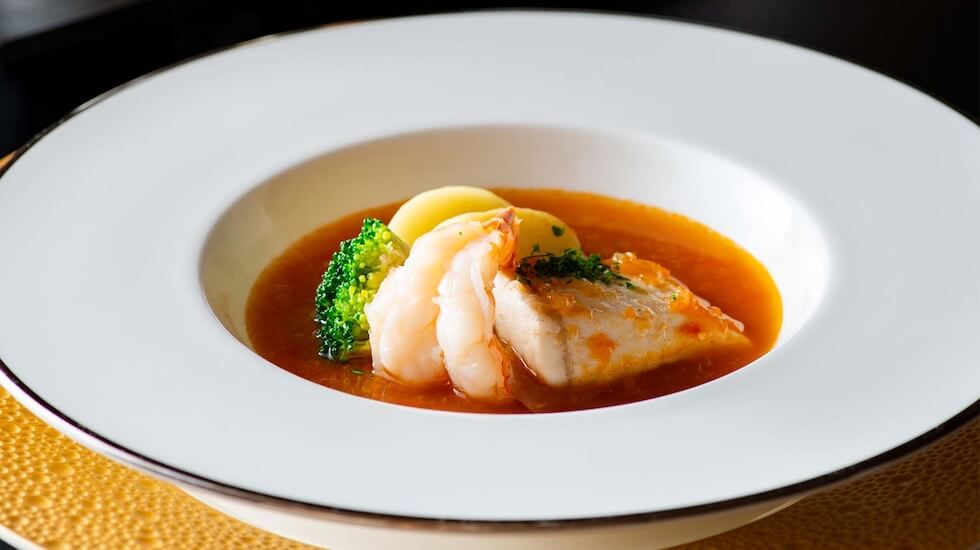 ヤマハリゾート伝統レシピのひとつ、ブイヤベース。遠州で採れる魚やはまぐり、うなぎを贅沢に使用。