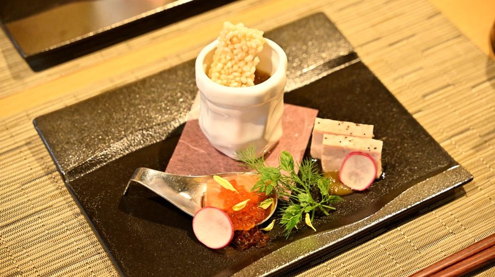 伊豆ならではの食材を使った和の創作料理。見た目にも美しく、口にしてもアッと驚くおいしさ。キノコのフラン、富士山サーモンのミキュイなど、趣向を凝らしたメニューで楽しませてくれます。