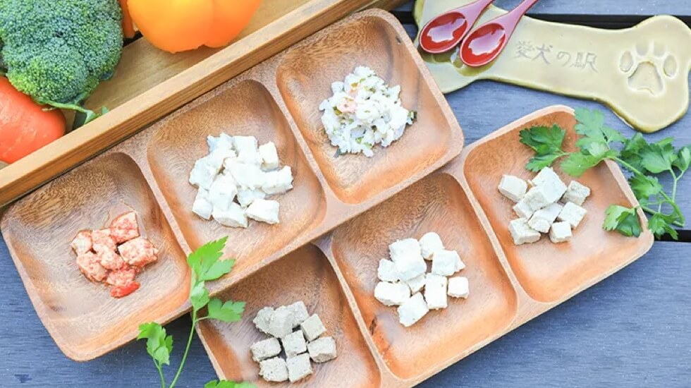 爽やかな緑を目にしながら食べる朝食は、食べごたえ十分な和食御膳。甘みのある白米とよく合う鯵の干物が好評です。地産の味を堪能できる削りたての鰹節や、季節によっては金目鯛のお造りが登場することもあるそう。そのほか、厚焼き玉子や煮物など、シンプルかつ一日のエネルギーをチャージするのにちょうどよい朝食がバランス良く出てきますよ。わんちゃんには夕食同様、ビュッフェやプレートが用意されてるので、お腹も心も満たされること間違いありません。