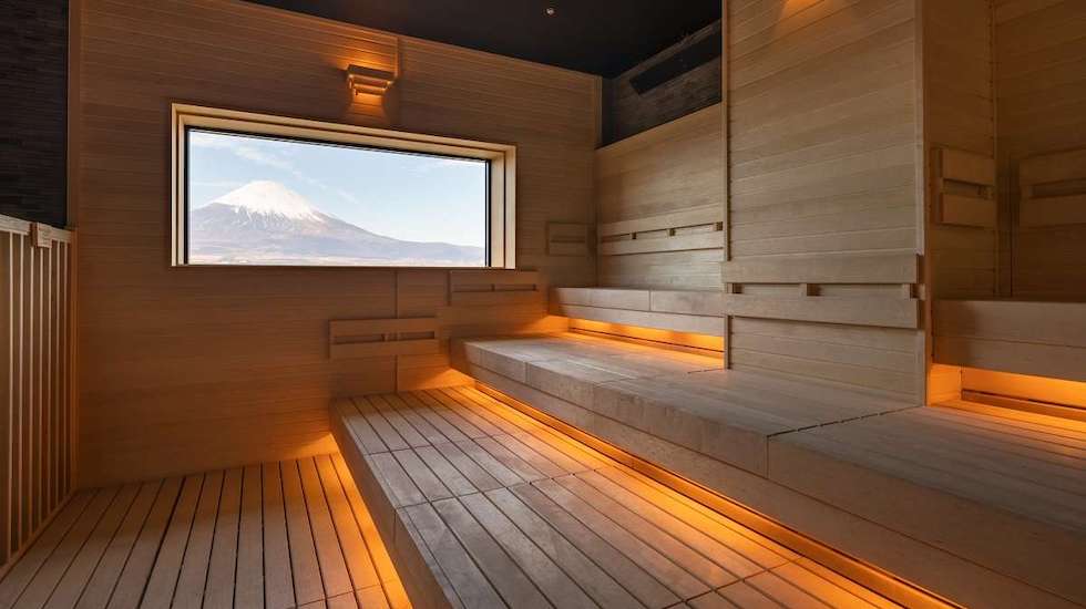 サウナでは、本場フィンランドの入浴方法「ロウリュウ」のサービスが。熱いサウナストーンにアロマ水を注ぎ、マイナスイオンを含んだ水蒸気を発生させます。その蒸気をスタッフが大きなうちわであおぎ熱波を循環させ、体感温度を一気に上げていきます。実施は1日4回で、アロマは毎時間変化。参加するたび新しい香りを楽しめますよ。サウナについた窓からは富士山が見えます。老廃物を出し切り、身も心もリフレッシュしましょう♪