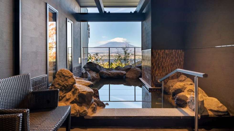 客室の半数以上が、富士山ビューという最高の眺望で、室内は和モダンのデザインを取り入れた落ち着きある雰囲気。部屋タイプもツイン、ダブル、デラックス、コンセプトルームなどさまざまです。森林側の客室もあるので「部屋から富士山が見たい!」という人は富士ビューでの予約が必須。人気インテリアブランド「journal standard Furniture」とコラボした限定3室のデザインルームもおすすめです。