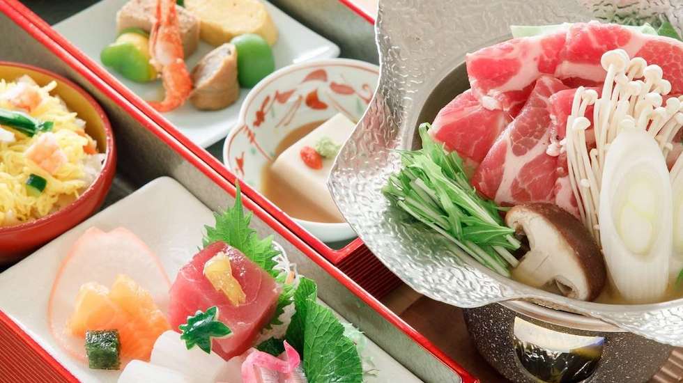 夕食は地元静岡の食材を取り入れた和食料理。料理長こだわりの料理は味はもちろん、彩りが豊かで目でも楽しめます。御殿場地方に古くから伝わる御厨(みくりや)そばや、炭火焼カウンターで焼いた魚や肉など日本料理の技法を活かした料理は、御膳から一品料理までメニューも豊富。夕食のグレードアッププランもあるので、ワンランク上の食事を楽しみたい人はそちらがおすすめ! 最高の景色と共に絶品料理を堪能してください。