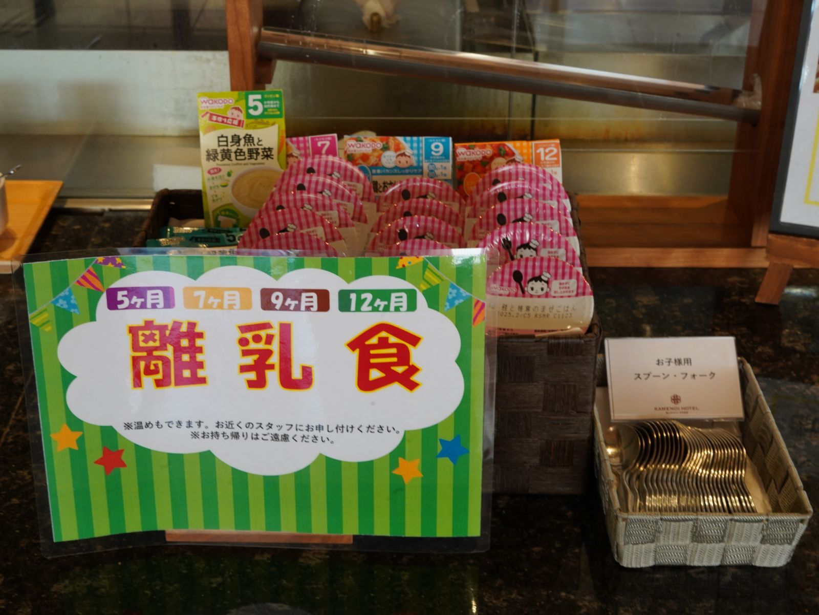 どの世代のゲストにも気持ちよく楽しんでほしい、というホテルの気持ちがこもった離乳食のサービス。朝食ビュッフェの会場で、5カ月~12カ月児向けのレトルト離乳食を無料で提供してくれます。温めることもできるので、スタッフに一声かけてみて。