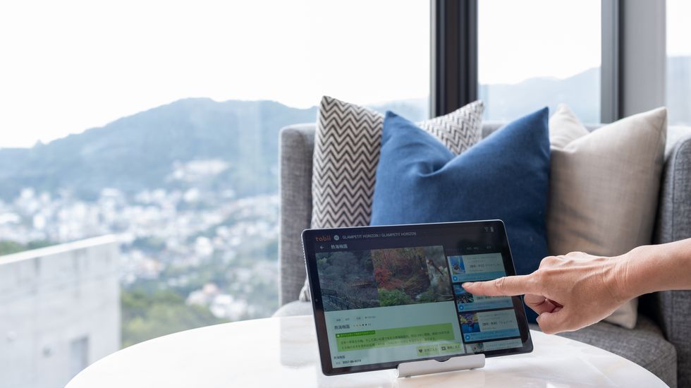館内の設備や使い方は備え付けのタブレットで。周辺の観光スポットのリサーチもできますよ。