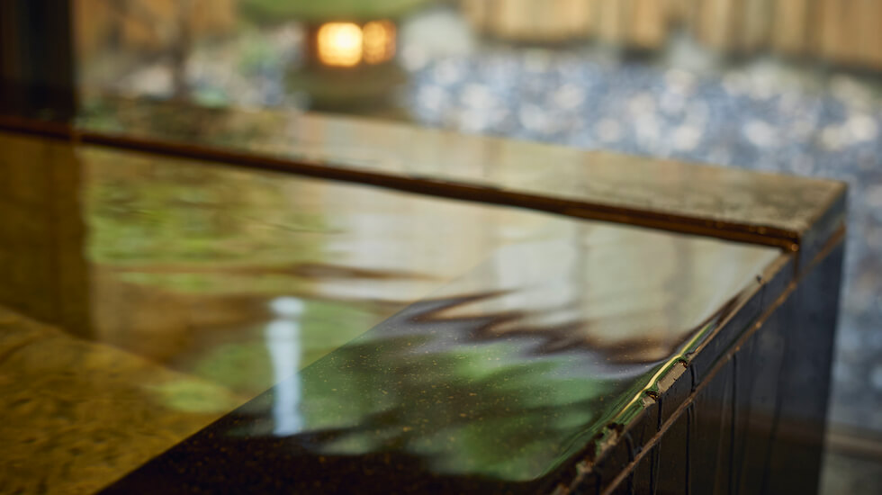 無色透明で匂いも香りもない熱海温泉。弱アルカリ性で湯あたりやわらかな泉質です。