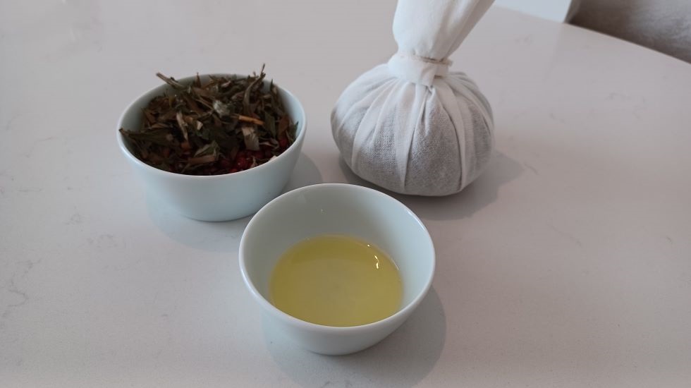 スパトリートメントの癒し効果や人気傾向を熟知している大塚さんが本気でおすすめするのが、「Omika Wellness&Spa」の「OMIKAグリーンティーコンプレス」。静岡産の緑茶とほうじ茶、ドクダミ、クロモジなどのハーブをぎゅうぎゅうに詰め込んだ大きな薬草ボールを使い、オイルでボディマッサージをしていきます。「日本人のゲストにも大好評です。香りがよくて、全身ぽかぽか。むくみもスッキリしてすべすべに仕上がりますよ」。
